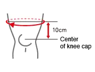 Đo chu vi vòng đùi ở vị trí cách trung tâm của xương bánh chè (chính giữa gối) 10cm. Nếu số đo của bạn rơi vào giữa hai kích thước, hãy chọn kích thước lớn hơn.